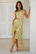 Floral One Shoulder Cutout Tiered Maxi Mullet Dresses-Green