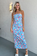 Floral Print Slim Fit Slit Hem Midi Tube Dresses-Blue Pre Order