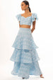 Flutter Sleeve Crop Top Layered Maxi Skirt Lace Matching Set-Blue Pre Order