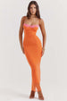 This dress is beautiful with its scalloped trim and a particularly warm orange hue. The signature stretch-mesh sculpts and ties at the back for maximum styling. Wear yours with sparkly pumps for a party-season radiant look.