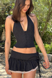 Polka Dot Print Halter Crop Top Mini Skirt Matching Set-Black