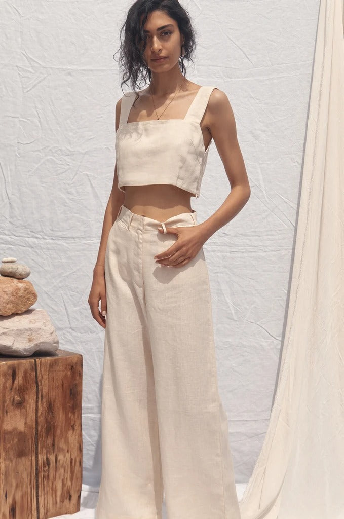 You can never go past a classic pair of tailored linen pants. suitable for any occasion. Sitting high on the waist and featuring soft pleats along the front. these trousers are flattering and easy to style. making them a timeless wardrobe staple.
