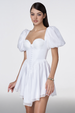 Puff Sleeve Button Asymmetric Hem Corset Mini Dresses-White Pre Order