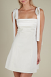 Crafted to cinch at the waist and flare gently over the hips. this dress accentuates your figure beautifully. It seamlessly blends timeless elements with modern details. offering versatile styling options with its long shoulder ties for a personalized touch. The structured bodice ensures an elegant silhouette. enhancing your curves gracefully. A ruched bust adds a hint of allure. while the back zipper guarantees a secure fit. Additionally. we've included adjustable straps beneath the ribbons for added security. which can be discreetly tucked away if desired.