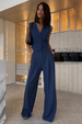 V Neck Waistcoat Plain Wide Leg Pants Matching Set-SlateGray